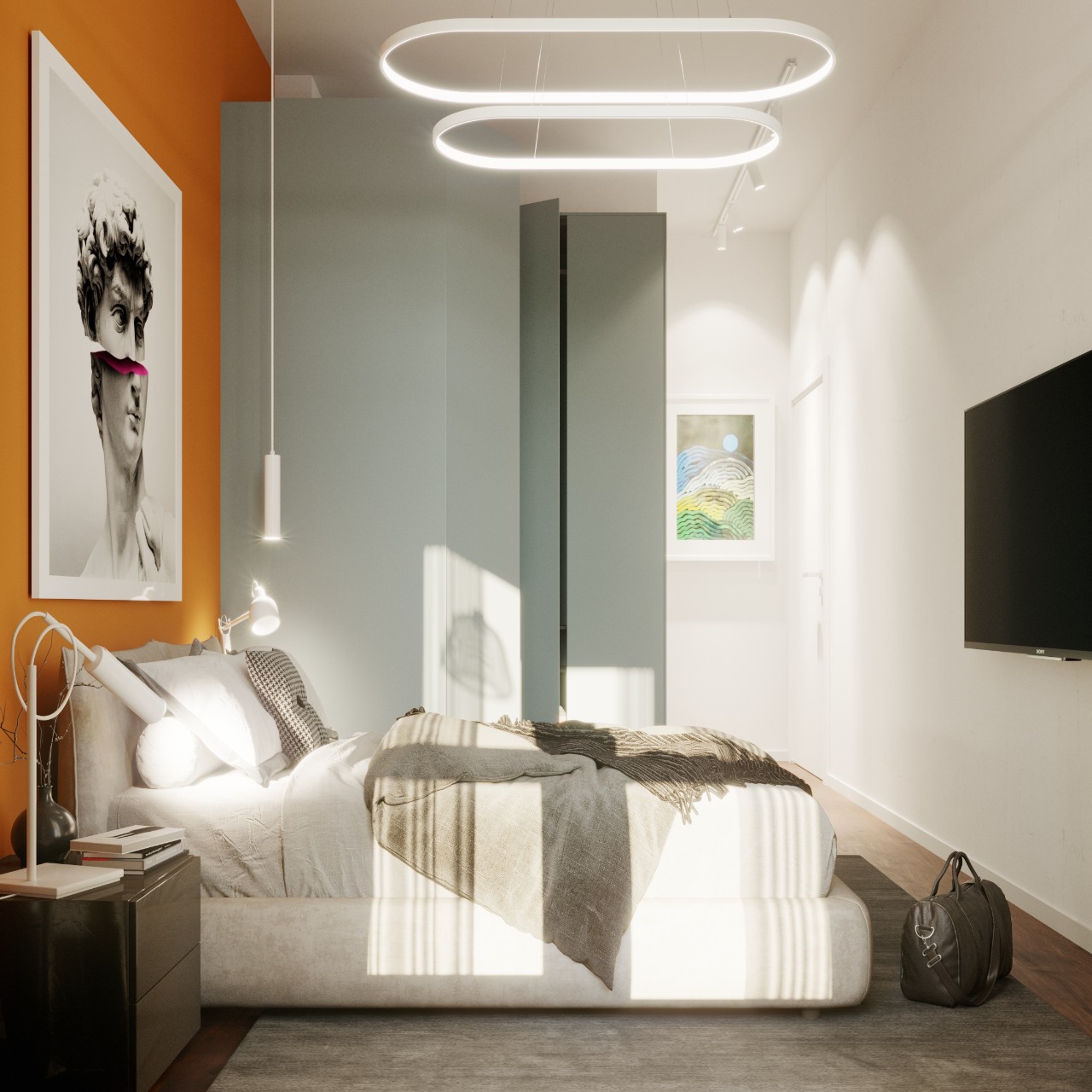 Apartament 2+1, me siperfaqe 98,9 m2, me orientim perendim. Hyrja behet ne zonen e dites, ku nepermjet nje korridori te vogel, ne te majte aksesohet tualeti, ne te djathte dhoma e femijeve dhe matrimoniale. Ambienti.i ndejtjes ka akses dhe diellezohet me orientim perendim. Dhomat e gjumit kane po ashtu dritare me orientim perendim.