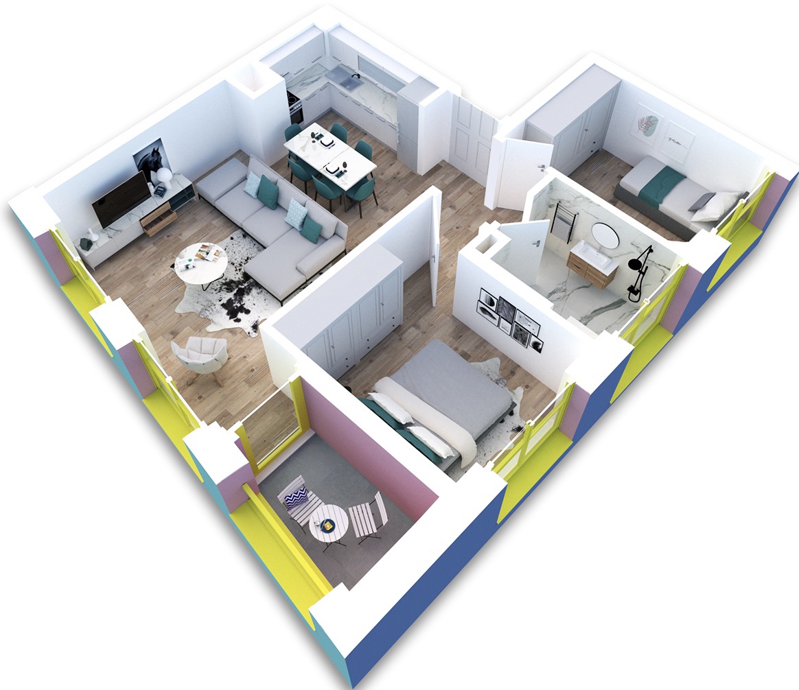 Apartamenti ka nje planimetri te regullt kuadratike qe e ben 100% te shfrytezueshme. Apartamenti eshte i mireorganizuar ne 2 dhoma gjumi me siperfaqe optimale, tualeti me dritare, kendi i gatimit ne te djathte dhe dhoma e ndenjes e cila ka akses ne llozhen e apartamentit. Apartamenti eshte i mirendricuar gjate gjithe dites dhe ndodhet ne nje kompleks rezidencial i cili ofron te gjitha kushtet per nje jetese te qete e komode. Pagesat jane me keste dhe ofrohet financim ne rast se doni ta merni me kredi.