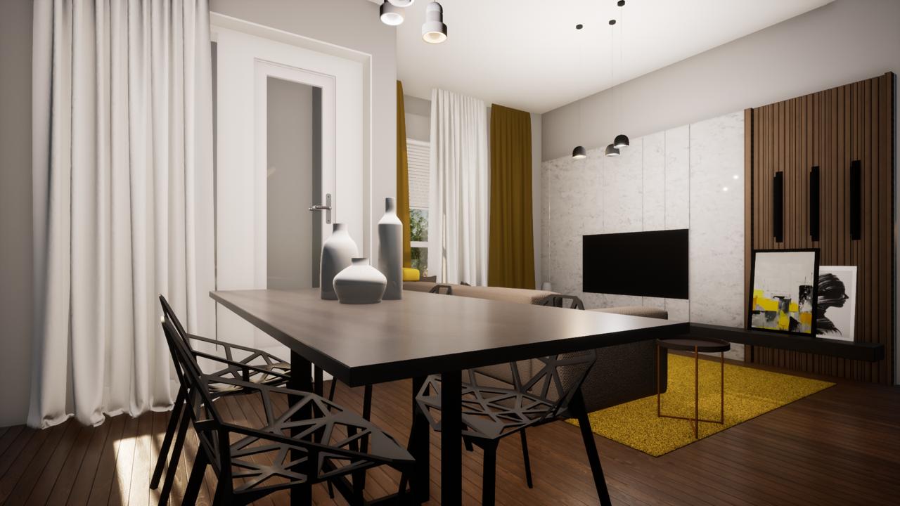 Apartament 1+1, me sipërfaqe 62.8 m2, me një orientim midis jugut dhe perëndimit. Hyrja realizohet me anë të një korridori të vogël, nga ku aksesohet tualeti dhe më pas zona e ditës. Zona e ditës ka akses në llozhën e orientuar drejt jug-perëndimit dhe lidhet me dhomën e gjumit e cila ka të njëjtin orientim.