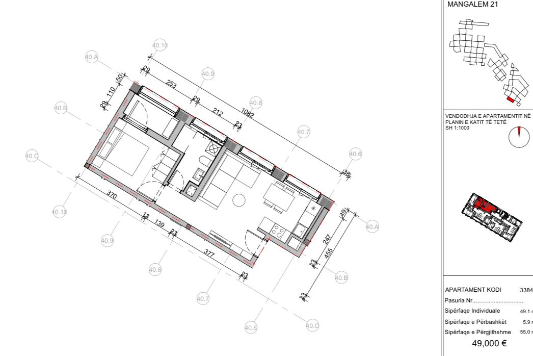 Shitet apartament 1+1 ne kompleksin Mangalem21, ne Ali Dem.