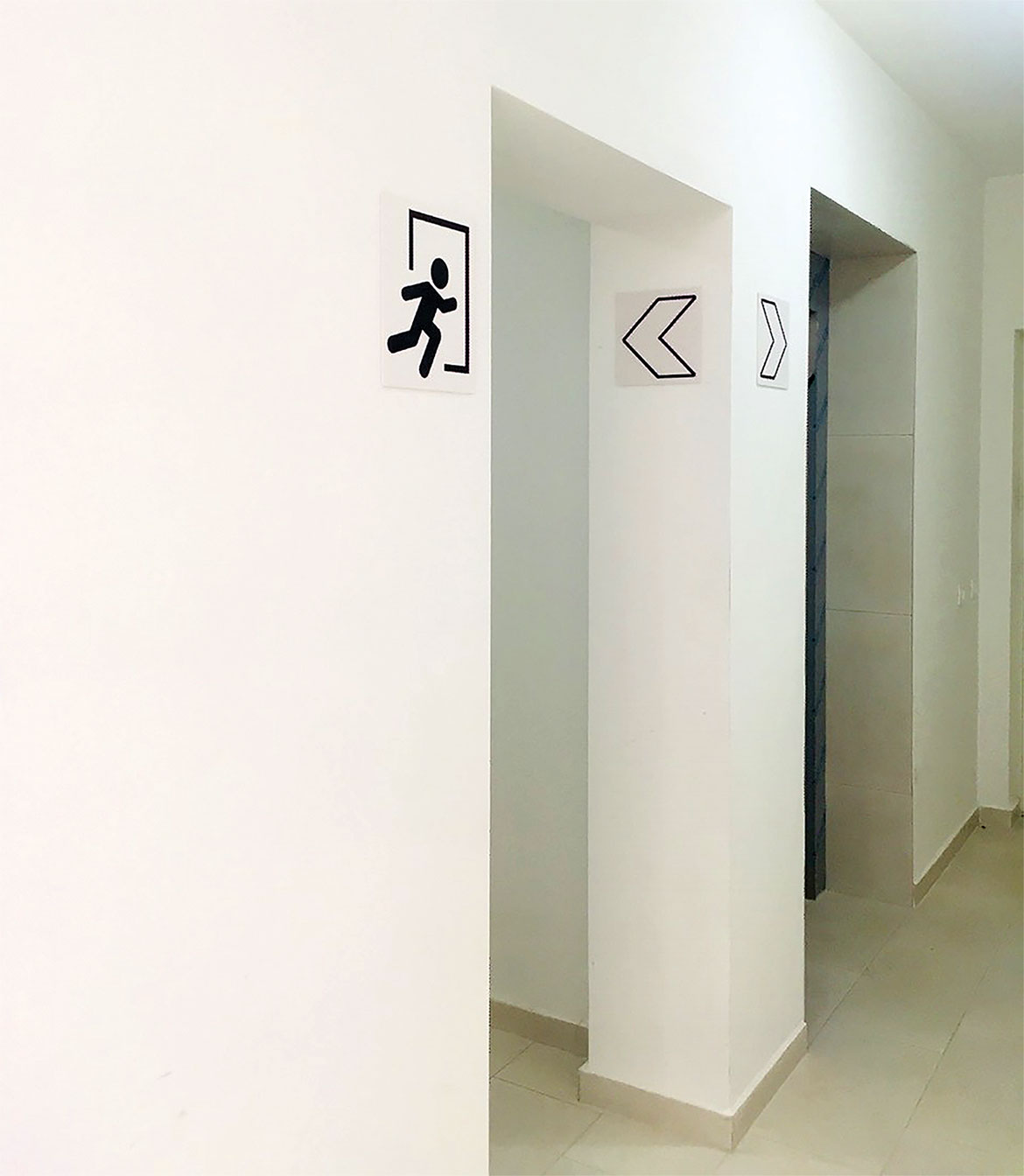 Signs are used for orienting residents within the facility. It also works to raise awareness among citizens about the cleanliness of the common premises. The material used for them is forex with a thickness of 3 mm. Their fitting is made with bi-adhesive and silicon adhesive.