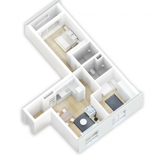 Apartament 1+1, me sipërfaqe 62.3 m2, me një orientim midis veriut dhe perëndimit. Hyrja bëhet në...