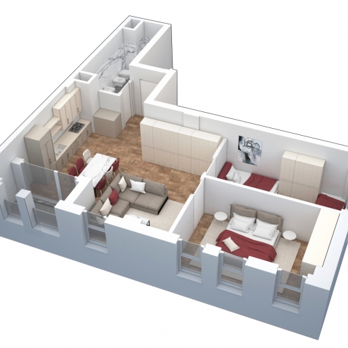 Shes Apartament ne Tirane! 21 dhjetori, Kompleksi magnet Apartament 2+1 Kati 10 S. 83.3m2 orientimi...