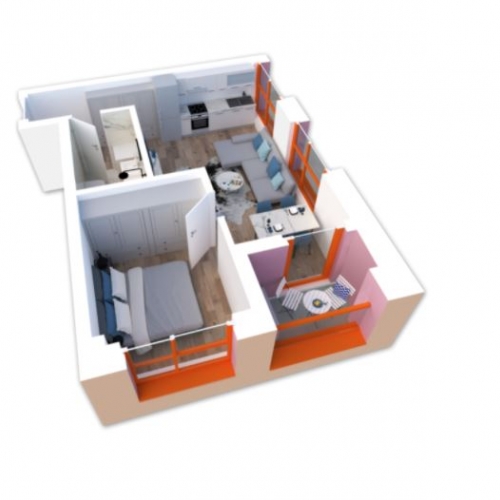 Mëso më shumëApartament 1+1 me siperfaqe 53.7 m2, kati 4, orientim jug lindje ne kompleksin Mangalem 21 te Ali...